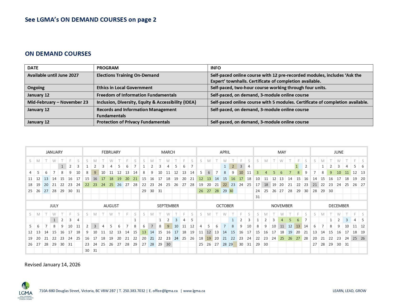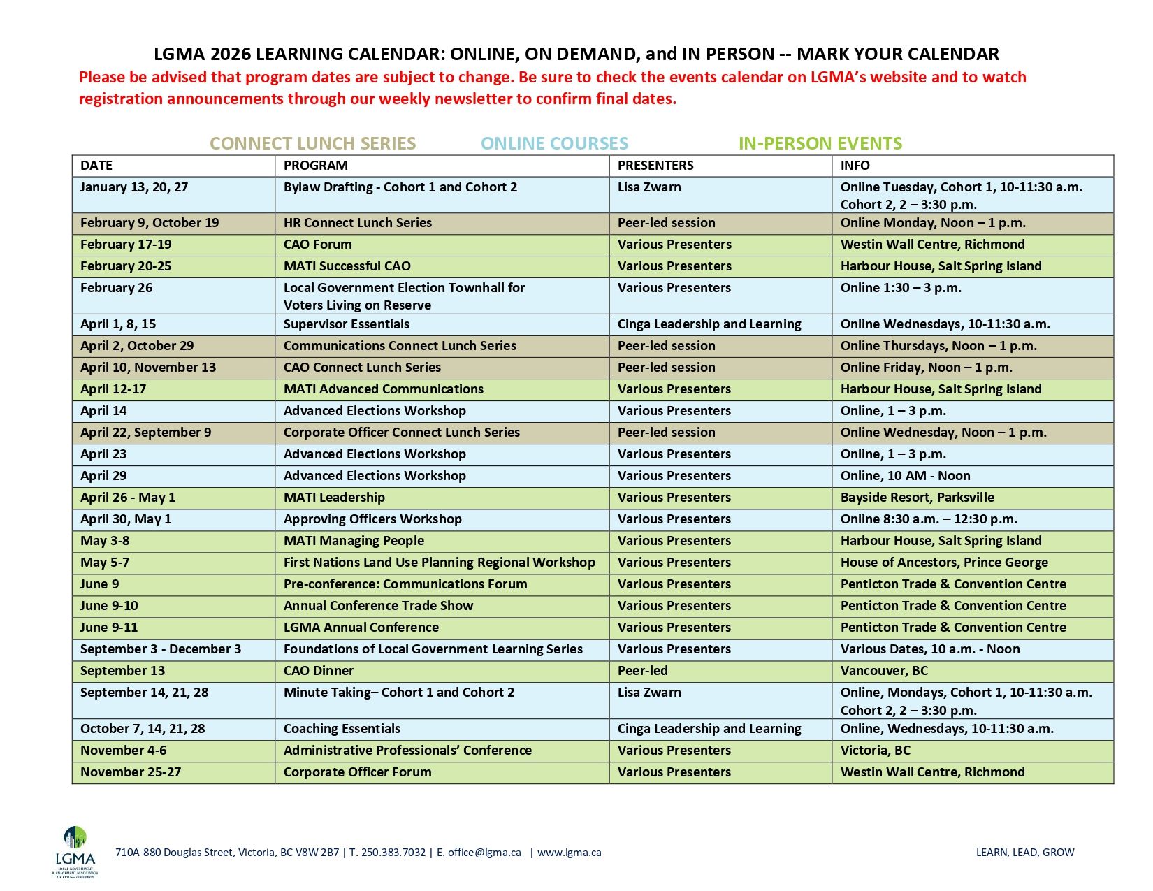LGMA 2026 Learning Calendar